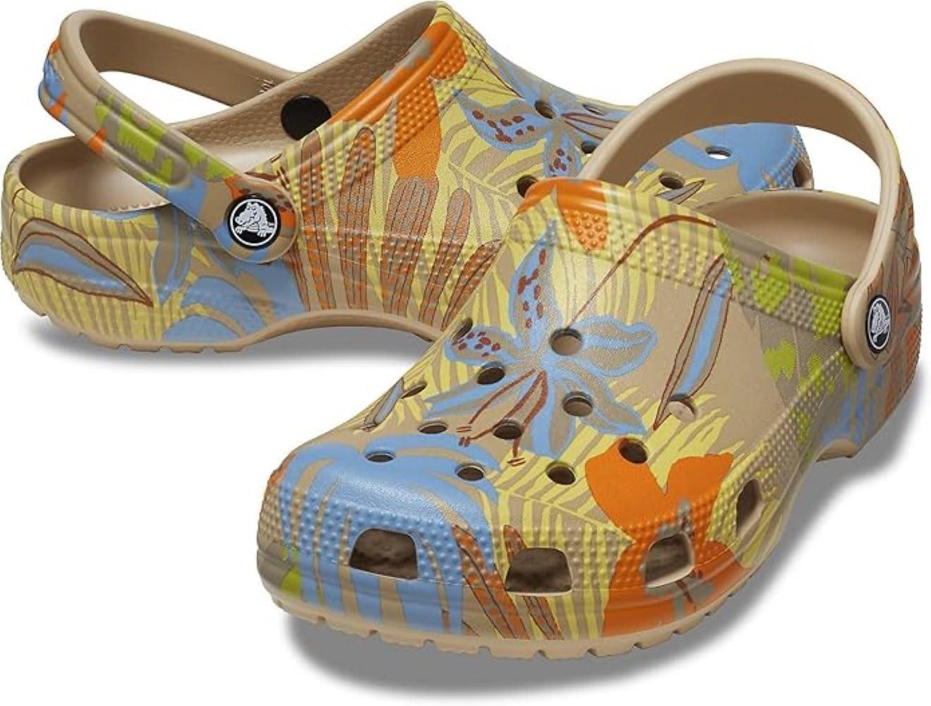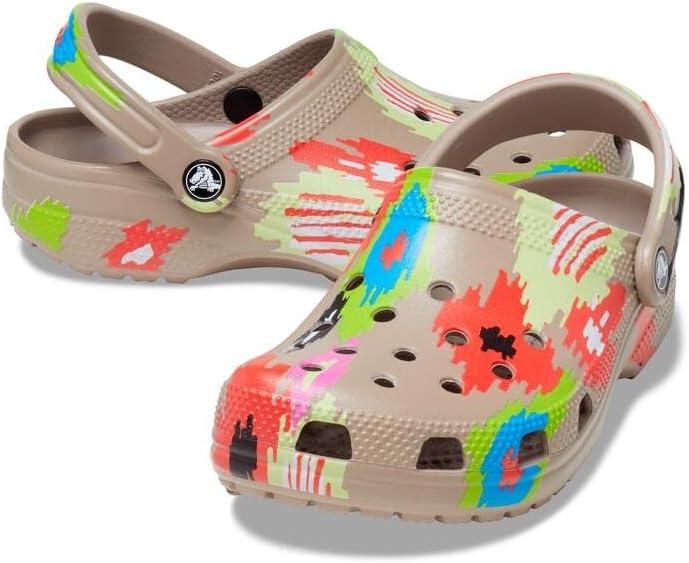 Crocs Unisex-Adult Classic Graphic Clogs(Chai/Multi)