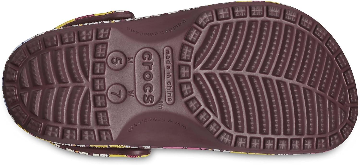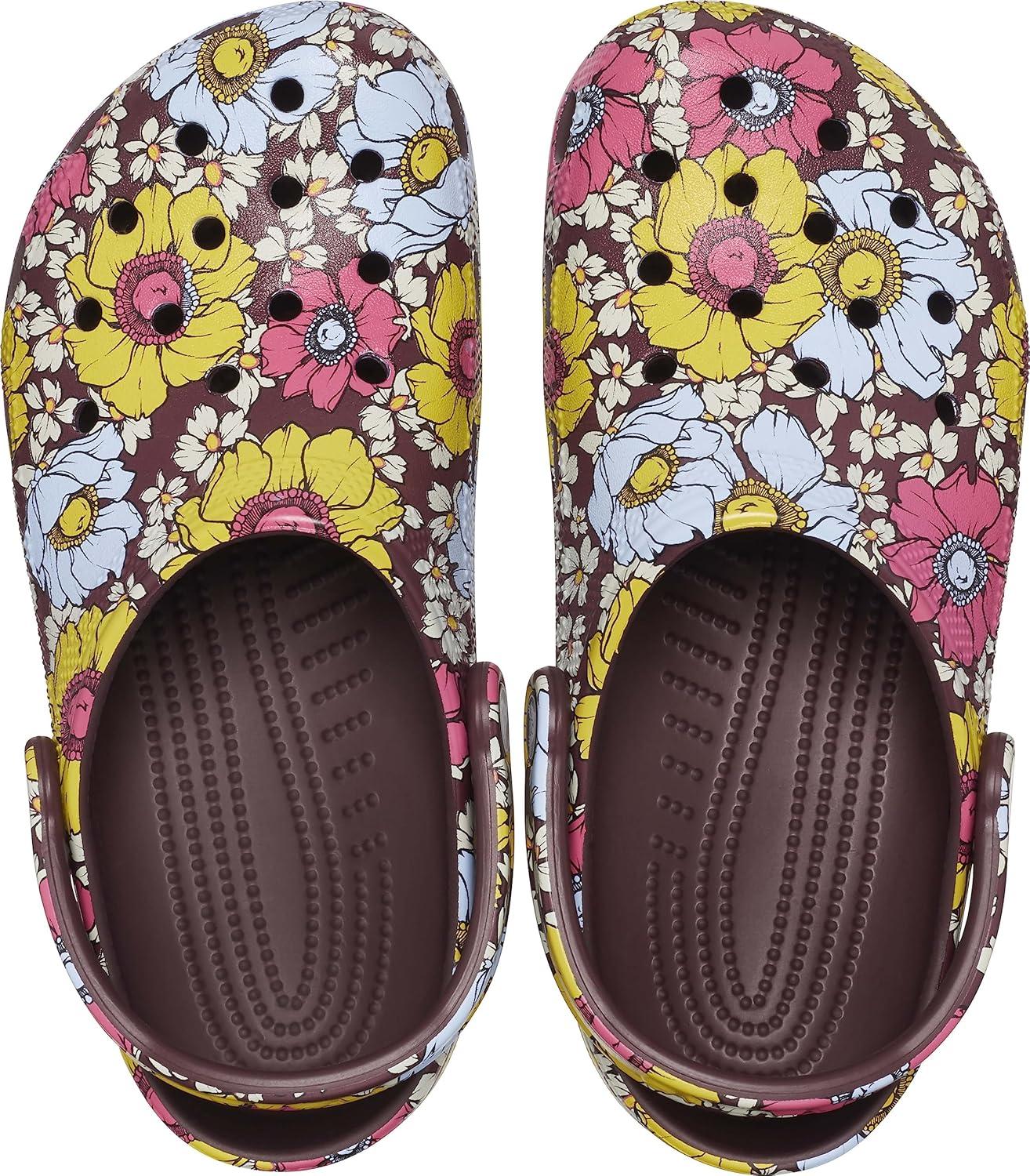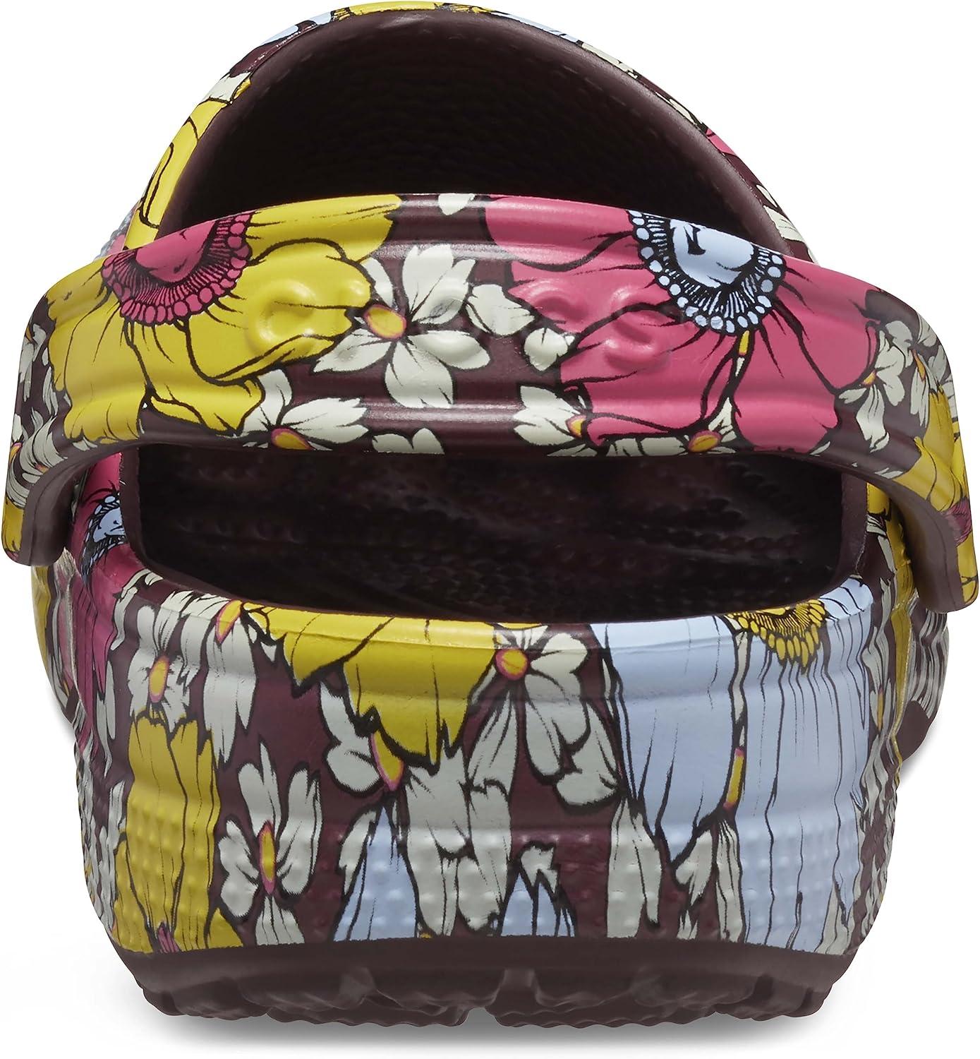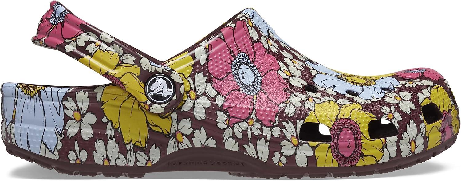 Crocs Unisex-Adult Classic Graphic Clogs(Dark Cherry/Multi Retro Floral)