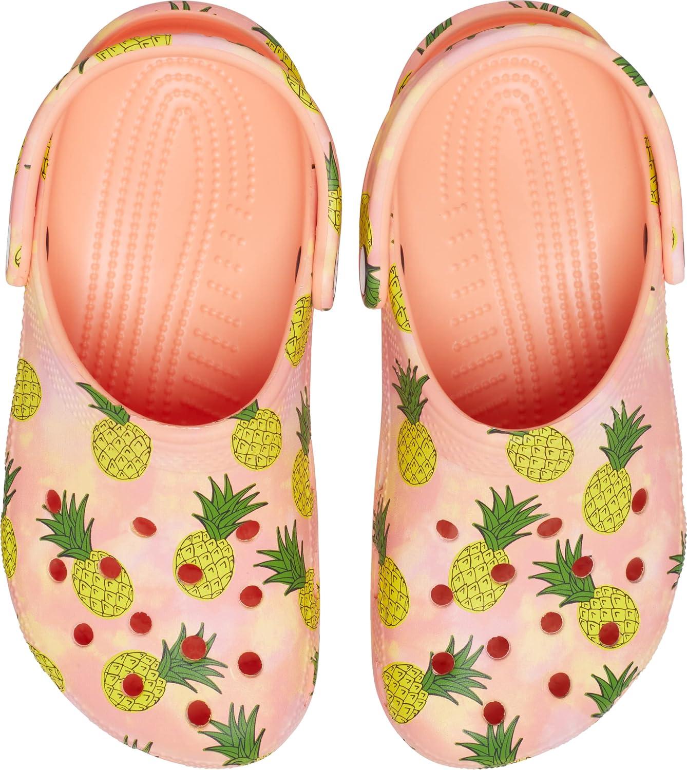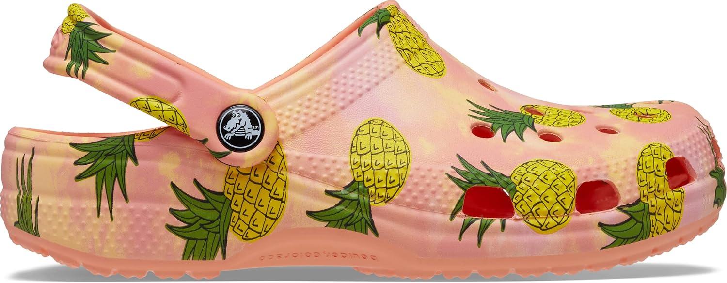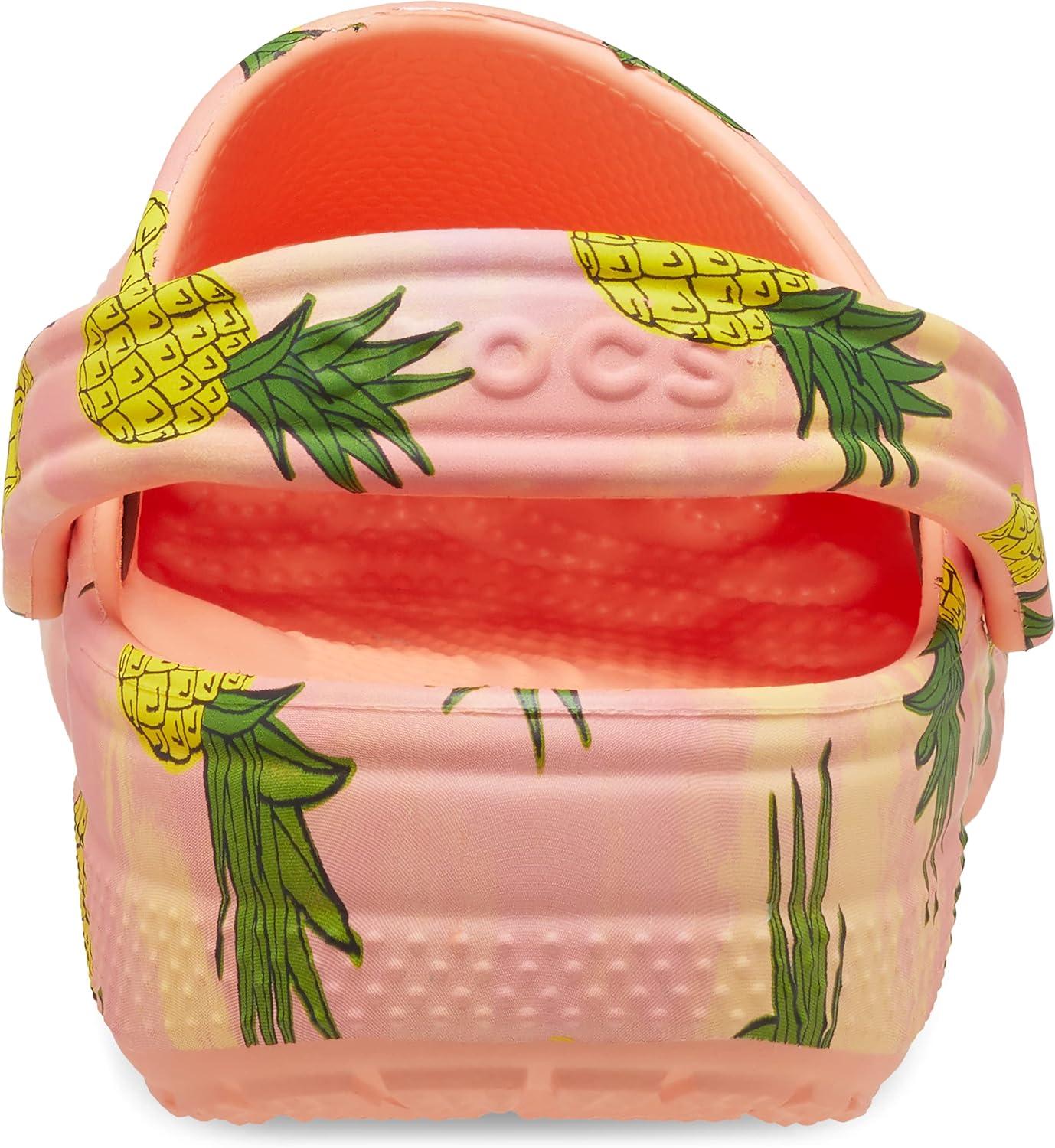 Crocs Unisex-Adult Classic Graphic Clogs(Papaya/Multi)